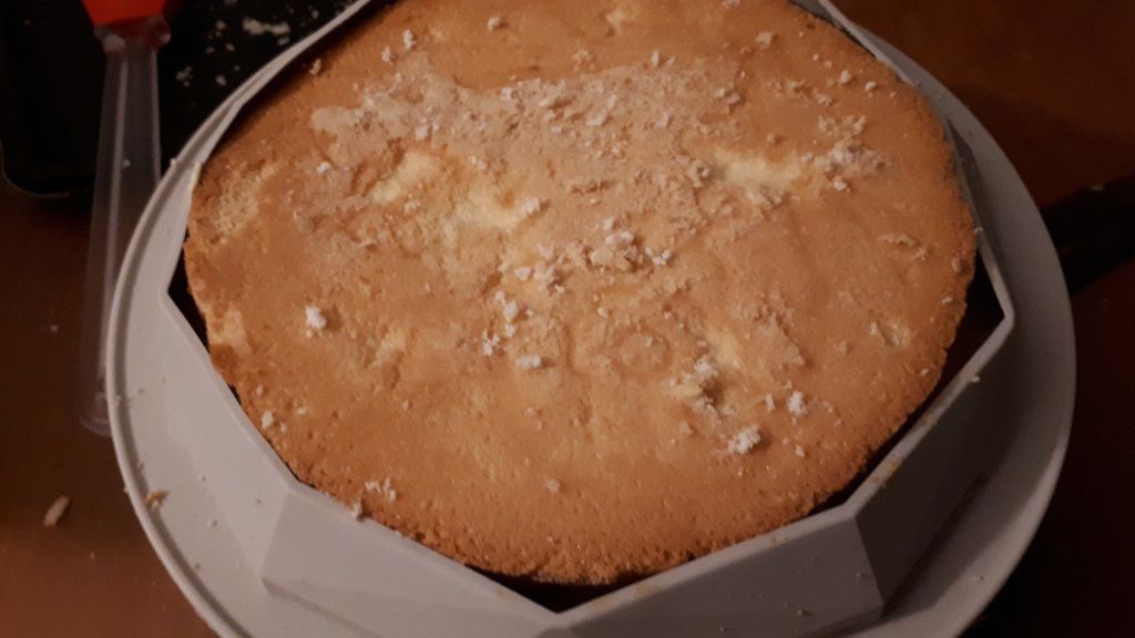 - Couler votre génoise dans un cercle de 16 cm de diamètre chemisé et faire cuire 10-12 minutes.