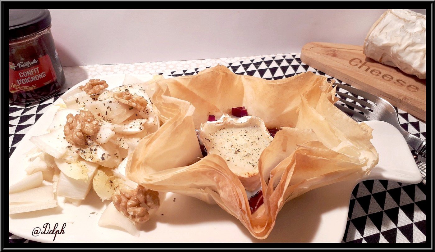 Avec le confit d’oignons que j’ai reçu dans la box hiver de Festifruits, je me suis réalisée un petit repas gourmand…Une petite assiette pour les midis où je mange seule. Avec la pâte filo, le feuilleté est croquant et un peu moins calorique qu’avec une pâte feuilletée traditionnelle, je me suis inspirée d’une recette trouvée chez Luna.