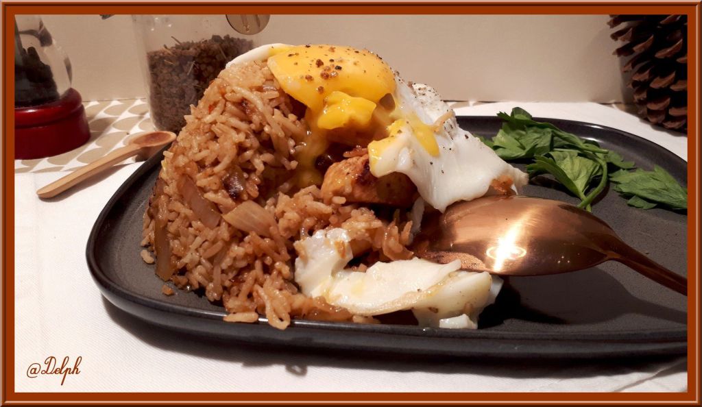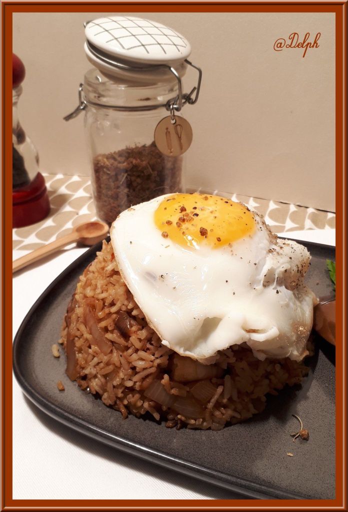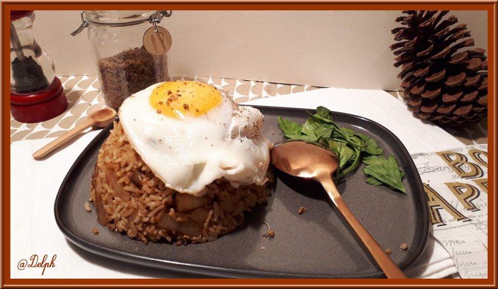 - Présenter le riz en dôme sur les assiettes, couvrir d’un œuf au plat.