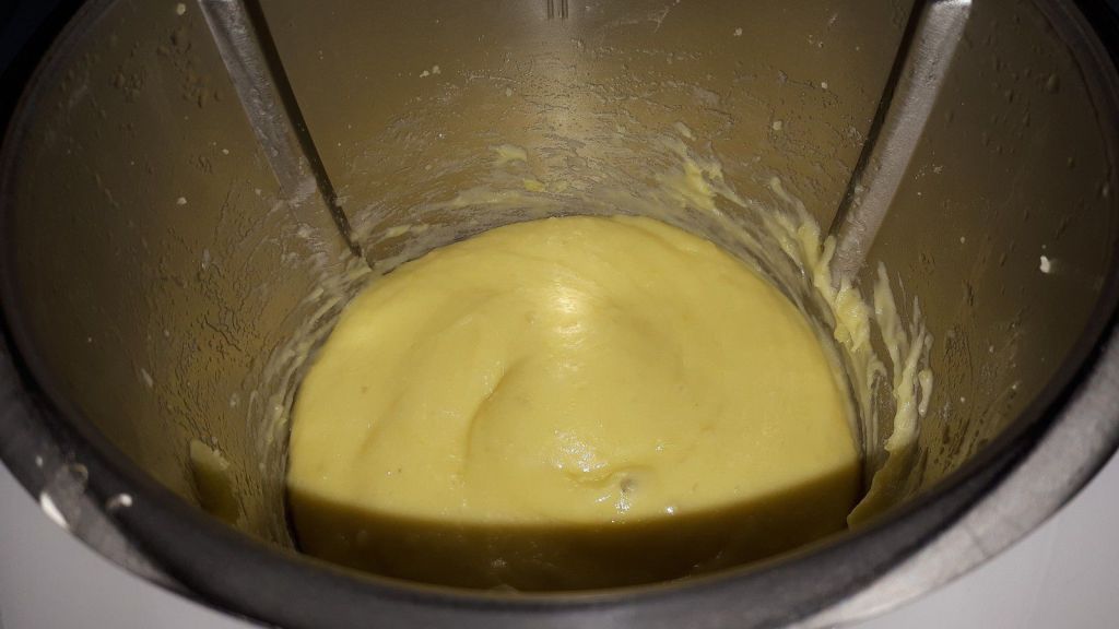 - A la sonnerie, enlever l’eau du bol, verser les pommes de terre dans le bol, ajouter le beurre et mixer 30sec/vit4.