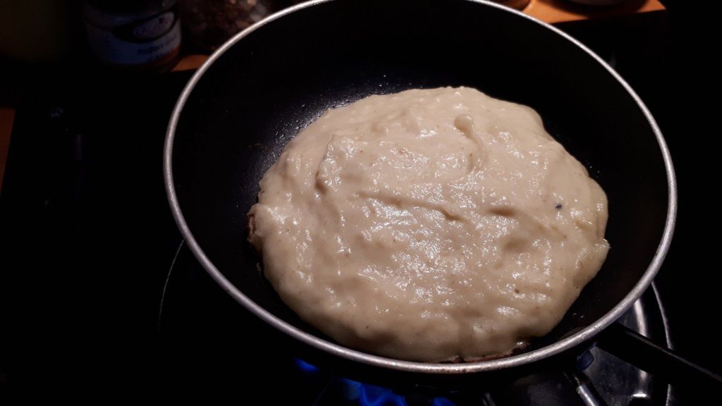 - Dans une petite poêle avec un peu d’huile chaude, déposer 1 c à s de pâte, aplatir légèrement et faire chauffer 2 -3 minutes sur chaque face. L’épaisseur est d’environ 1 cm.
