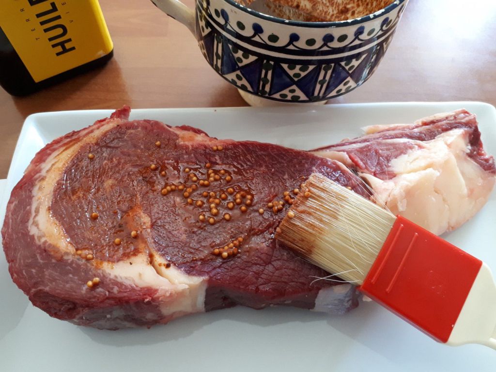 - Puis incorporer les autres ingrédients de la marinade, mélanger et répartir sur les deux faces de la pièce de bœuf avec un pinceau.