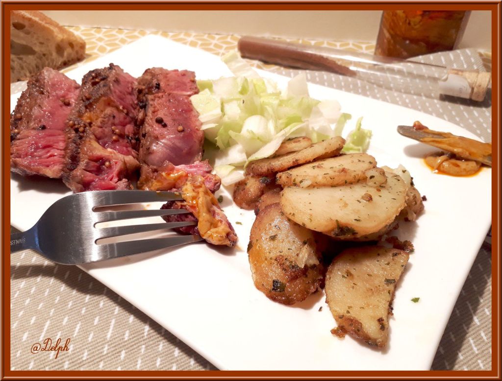 J‘ai testé le Barbecue Namibien, elle nous explique que les namibiens mangent essentiellement de la viande de bœuf ou de gibier bouillie, cuite en ragout ou grillée au barbecue accompagnée de légumes et de magnioc. N’ayant pas de magnioc j’ai accompagné ma viande d’une salade et de pommes de terre. Vous pourrez réaliser cette viande sur votre barbecue si le temps le permet ou avec une grille.