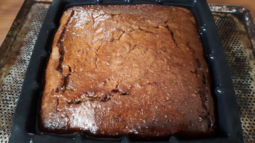 - Pendant ce temps préparer le sirop, porter le sucre, et l’eau, à ébullition et cuire pendant environ 5 minutes. Imbiber le gâteau encore chaud de sirop, ne pas mettre le sirop d’un coup, le mettre en trois fois pour que le gâteau s’imbibe correctement. et le laisser refroidir dans le moule.