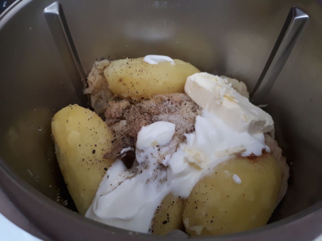- Égoutter le chou puis passer le au mixeur avec les pommes de terre le beurre et la crème, assaisonner de sel, de poivre, de muscade.