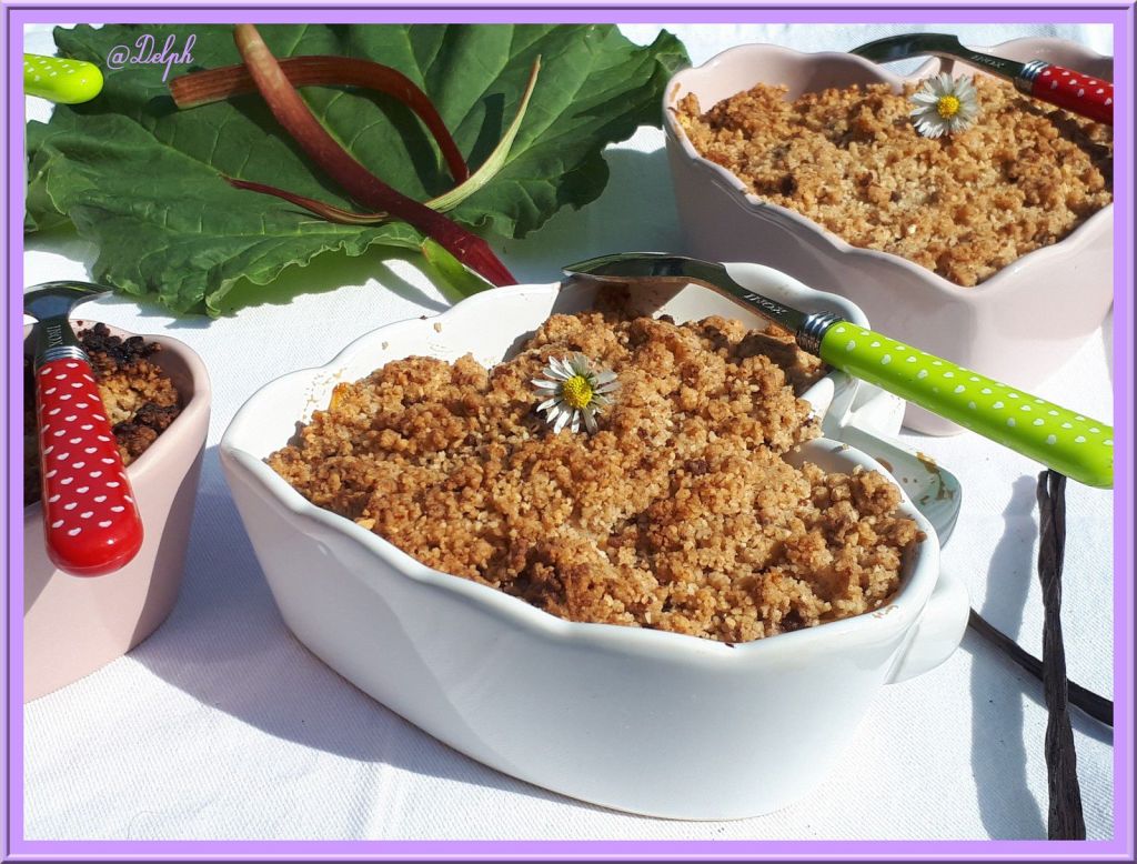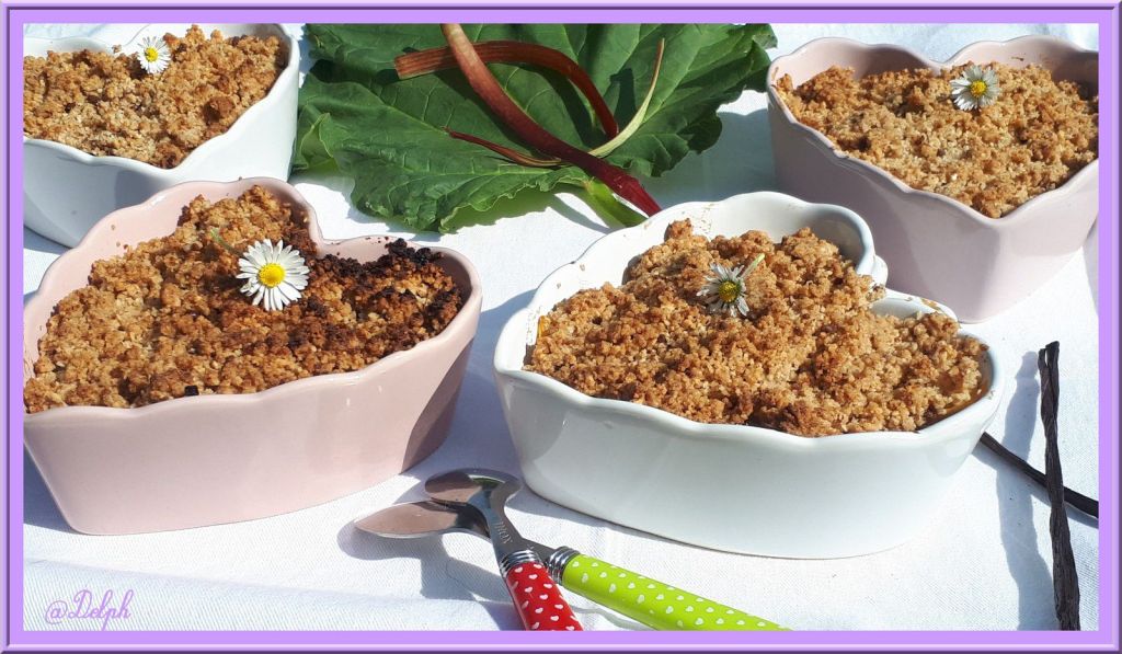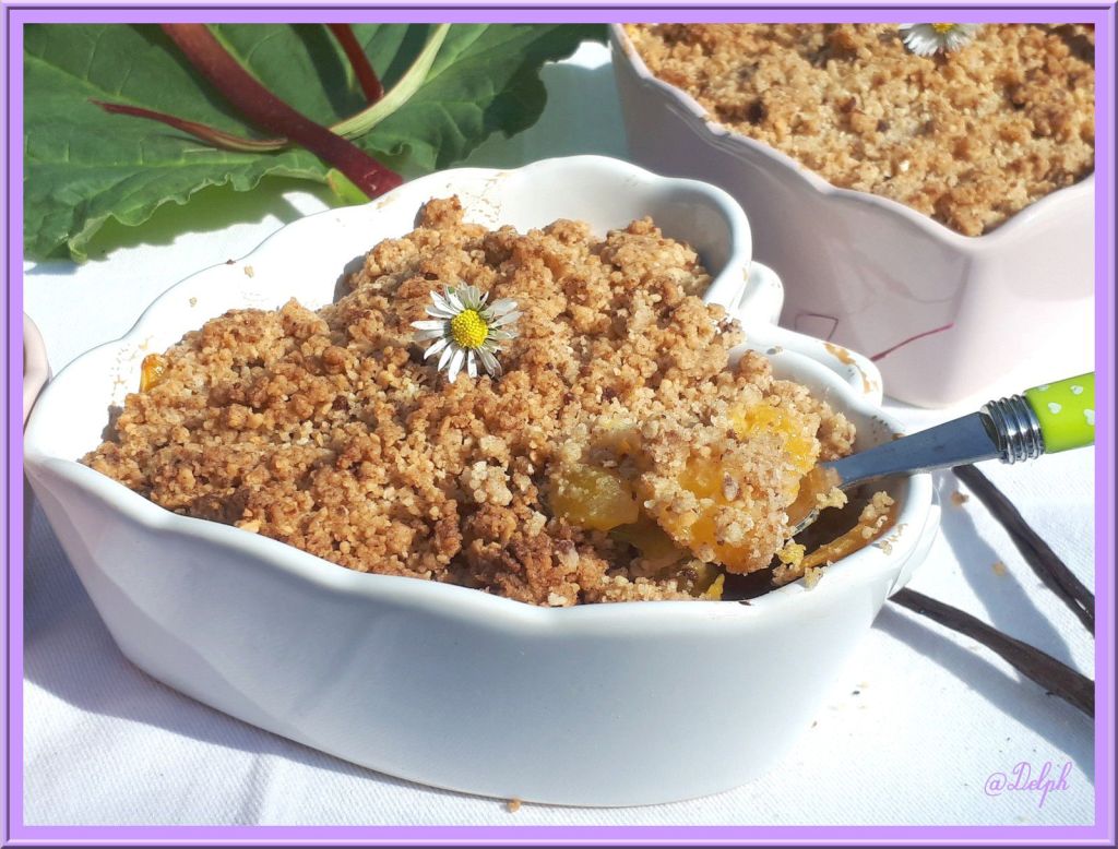 Voici une petite gourmandise très rapide à réaliser avec les premières tiges de rhubarbe de mon jardin et les mangues que mon fils me ramène de son travail. Depuis le temps que mon mari réclamait un crumble je lui ai fait plaisir.