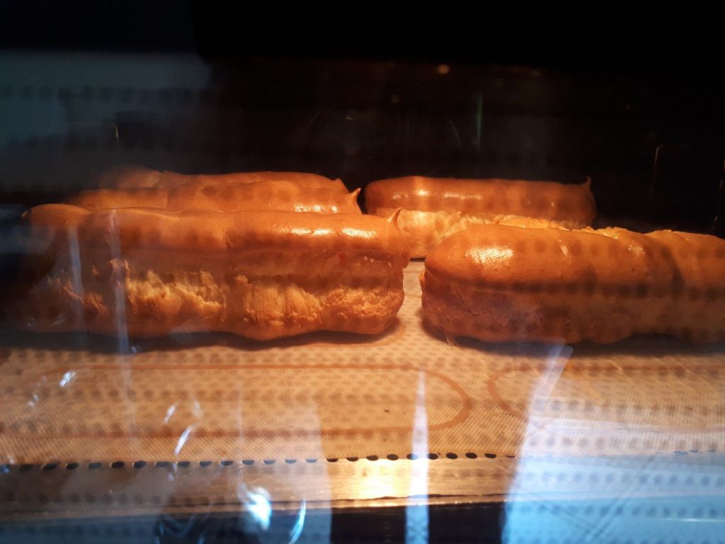 - Préchauffer le four à 230°C, puis au moment d’enfourner votre plaque d’éclairs, baisser la température à 170°C pendant 35 minutes. ( ne pas ouvrir votre four pendant la cuisson).