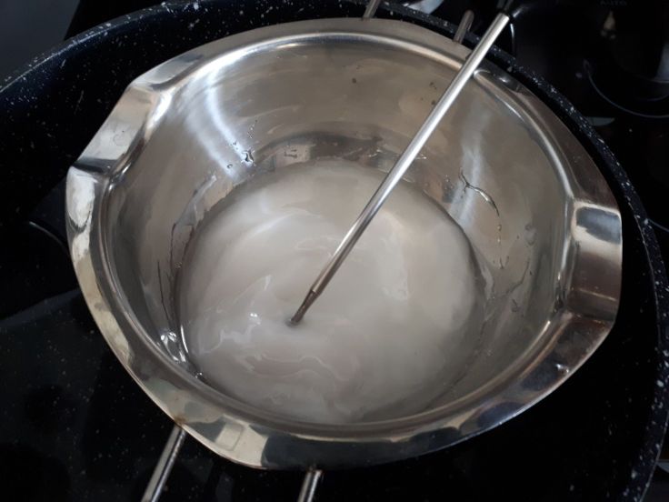 - Faire ramollir la gélatine dans de l’eau froide, ensuite mélangez-la à la crème encore chaude, elle va se dissoudre.