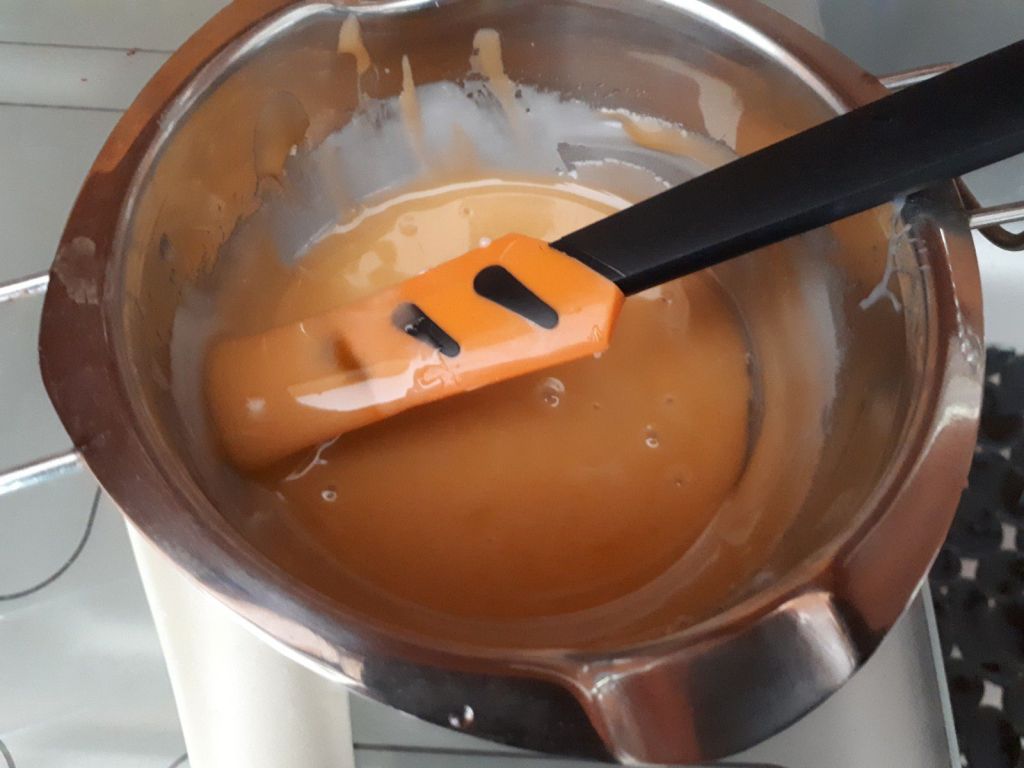 - Ajouter le caramel beurre salé, mélanger et laissez tiédir