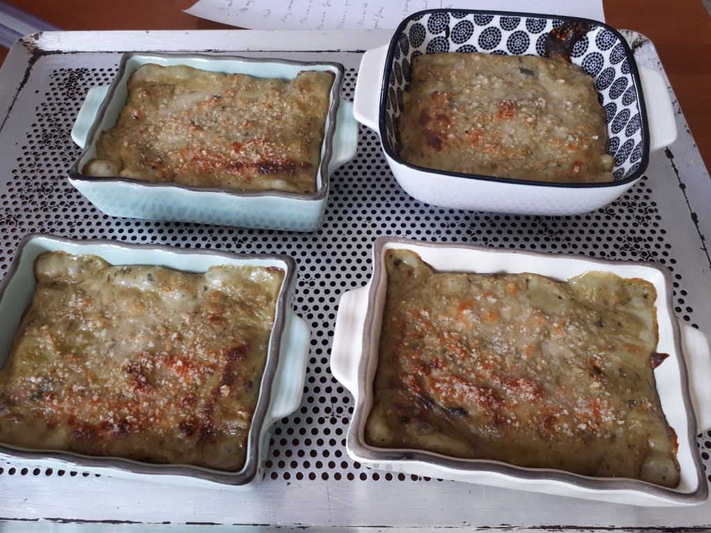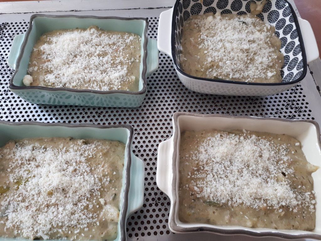 - Répartir dans des petits plat à gratin. Saupoudrer du reste de parmesan.