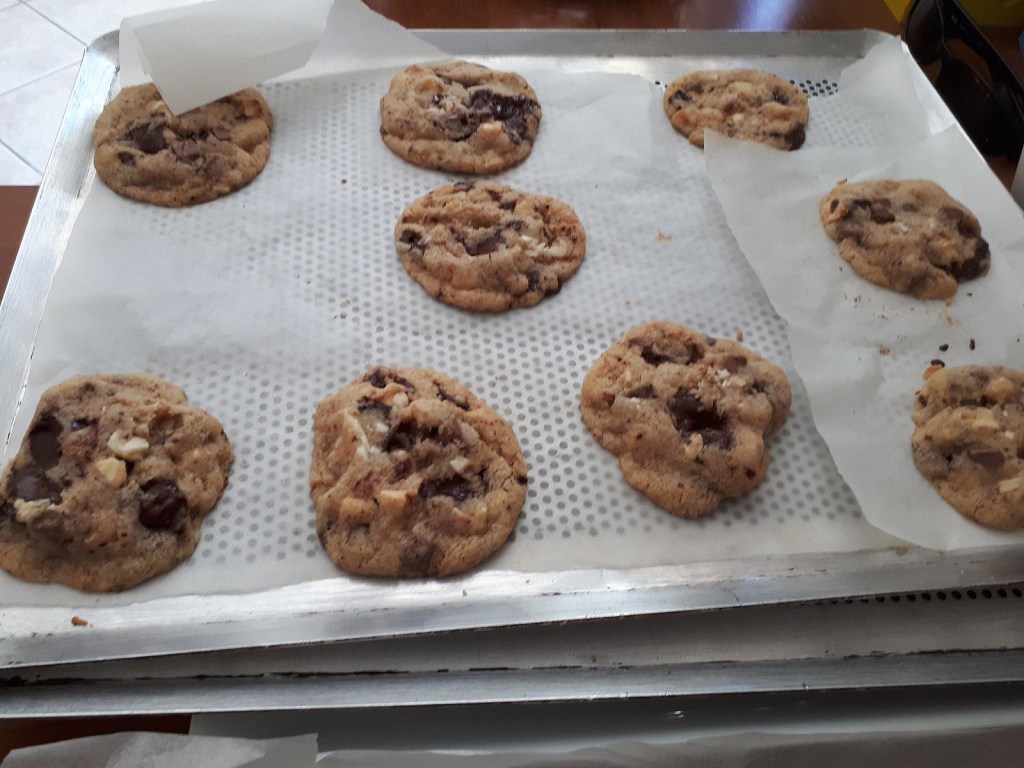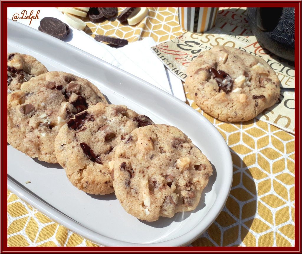 Nous sommes nombreux à suivre l’émission « Tous en cuisine » proposée par Cyril Lignac. Il a partagé sa recette de cookies, et comme nous sommes de grands fans de cette petite gourmandise il a fallu que je teste, j’ai juste ajouté du chocolat blanc pour avoir les trois chocolats.