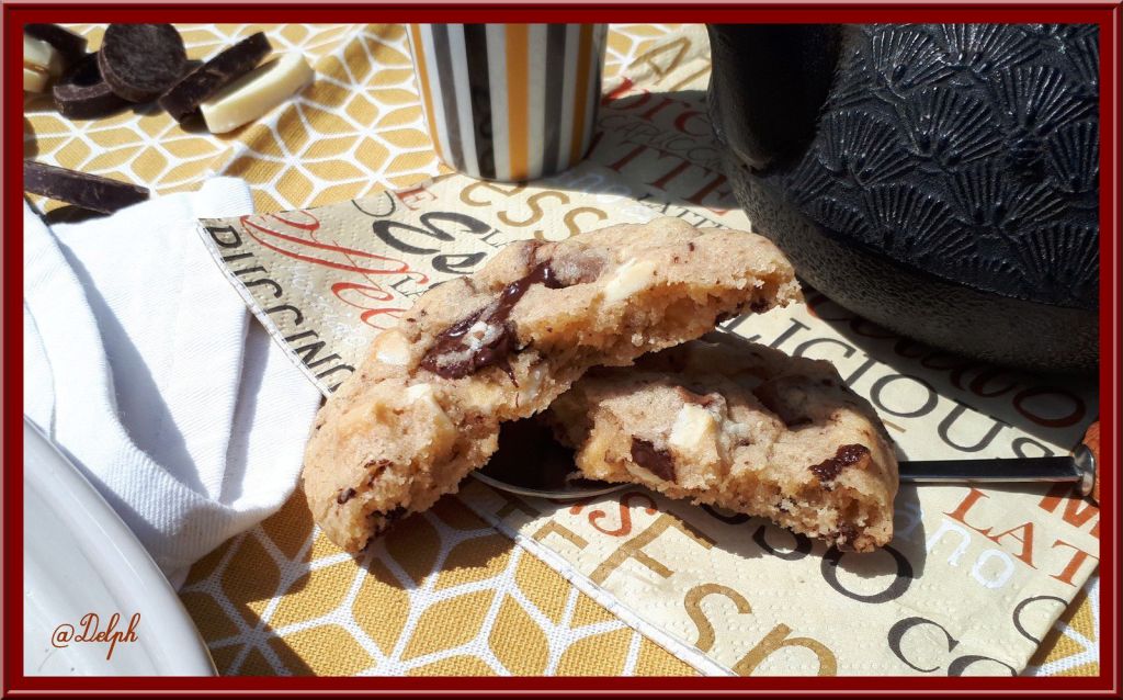 Voici les cookies que j’ai réalisé avec la moitié restante de la pâte, cookies abricots et chocolat blanc, une véritable tuerie.