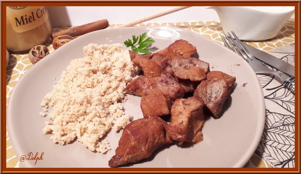 Voici une recette très savoureuse qui allie le sucré et le salé, c’est très agréable à déguster. J’ai accompagné ce plat de graines de couscous complet.