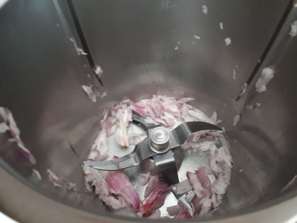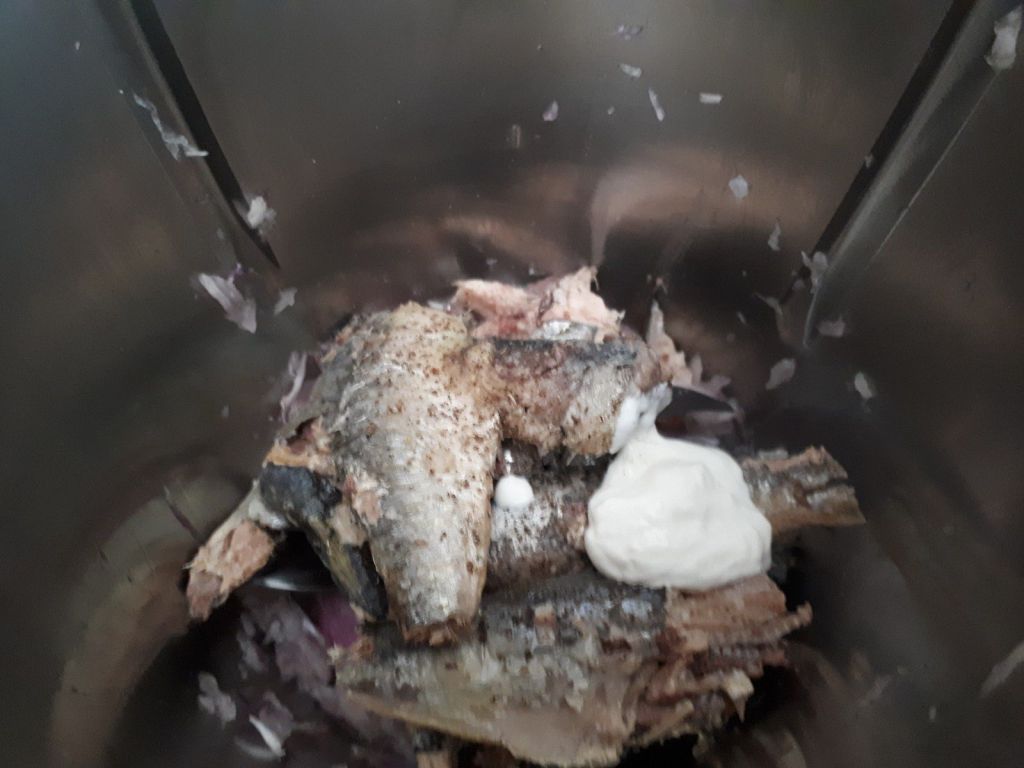 - Éplucher et couper votre échalote en deux, la mettre dans le bol du Thermomix et mixer 6sec/vit5, racler les bords avec la spatule, ajouter le jus de citron,le sel, le poivre, les sardines et la crème puis mixer 30sec/vit6.