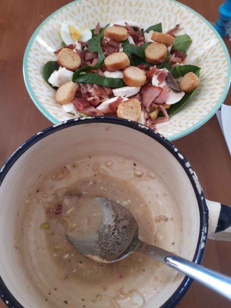 Les ingrédients étaient notés pour 8 personnes, mais comme mes hommes ne sont pas fans d’épinards j’ai réalisé cette entrée uniquement pour moi.. Vous pourrez multiplier par le nombre de personnes, il n’y a que la vinaigrette que je n’ai pas utilisée entièrement.