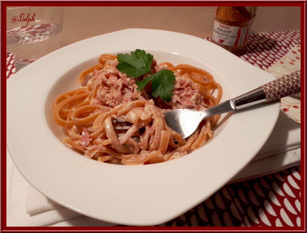 J’ai voulu tester ces délicieuses pâtes parfumées au piment d’Espelette, et je ne regrette pas elles sont vraiment parfaites. Voici le plat tout simple que j’ai réalisé avec.
