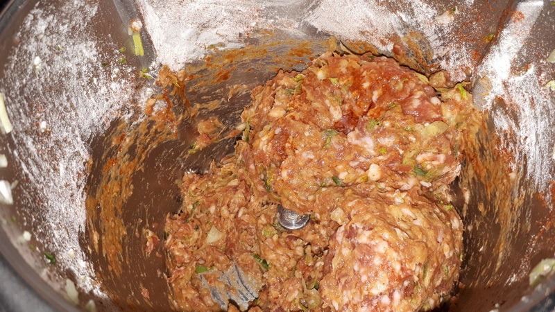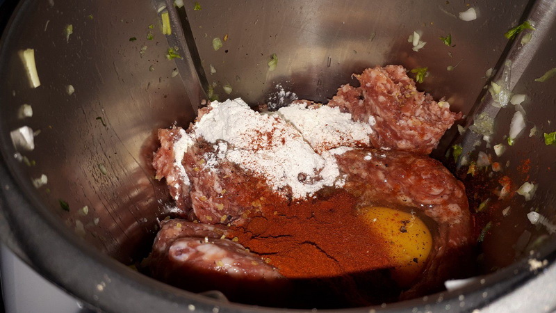 - Ajouter la viande hachée, l’oeuf, la farine et le paprika. Saler, poivrer et mélanger 20sec/couteau inversé/vit 3. Former vos boulettes, vous pouvez vous fariner les doigts.