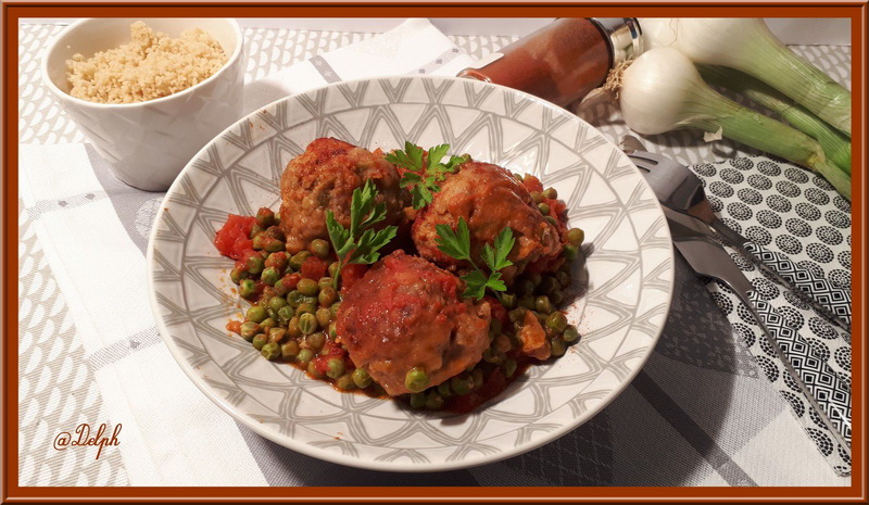 - Faire revenir vos boulettes quelques minutes dans de l’huile bien chaude, les retourner délicatement, ajouter les tomates et les petits pois, couvrir et faire revenir sur feu moyen une vingtaine de minutes. Jusqu’à ce que les petits pois soient bien cuits.