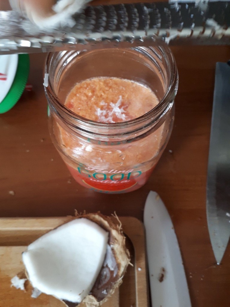 - Servir dans vos verres avec les glaçons et un peu de noix de coco râpé sur le dessus.