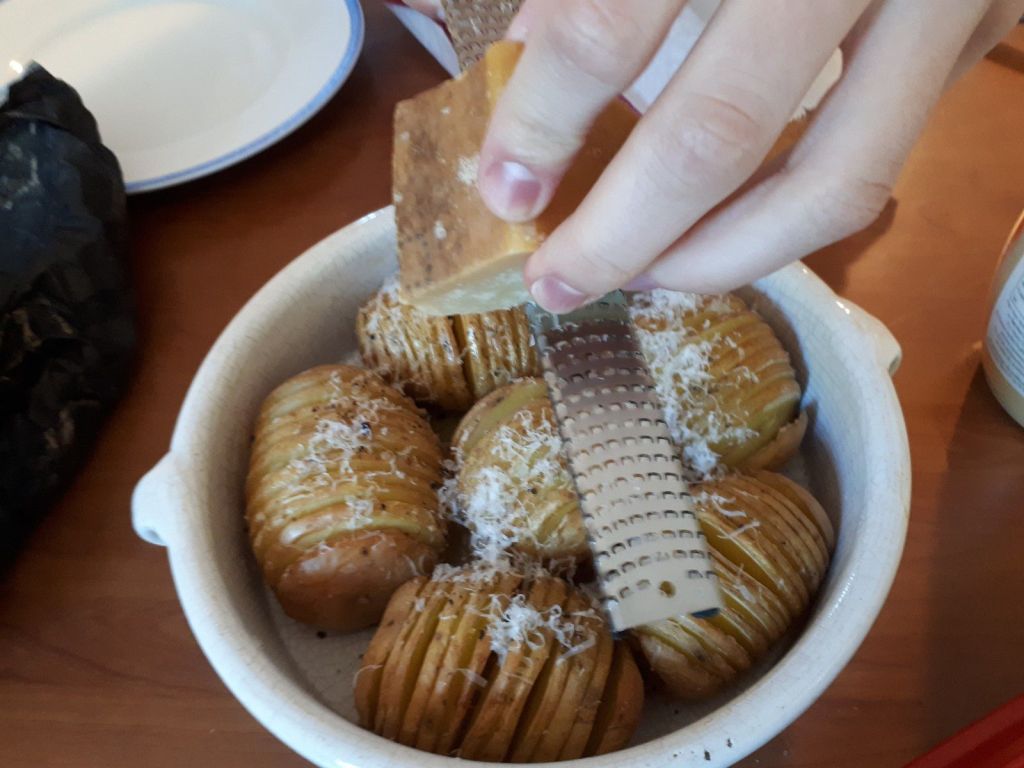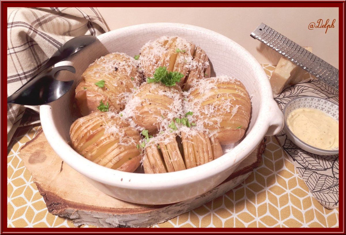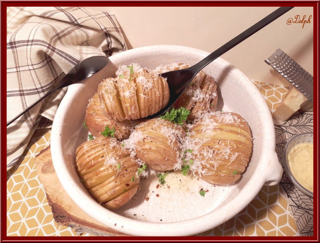 - A la sortie du four, parsemer les pommes de terre de parmesan et de persil ciselé.
