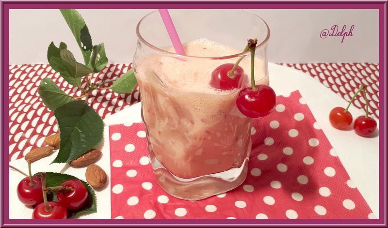 J’ai eu une belle récolte de cerise cette année, j’ai pu refaire d’anciennes recettes comme la confiture de cerises amande, mais aussi en tester de nouvelles comme ce délicieux milkshake.