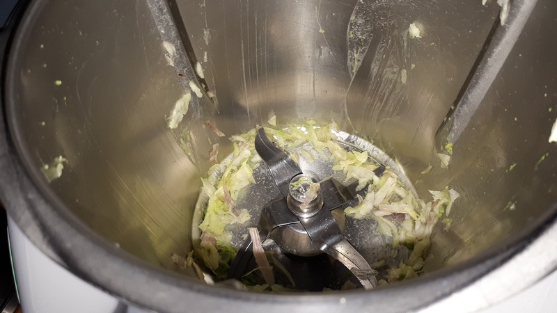 - Éplucher votre échalote, la couper en deux et la mettre dans le bol, mixer 5sec/vit5.
