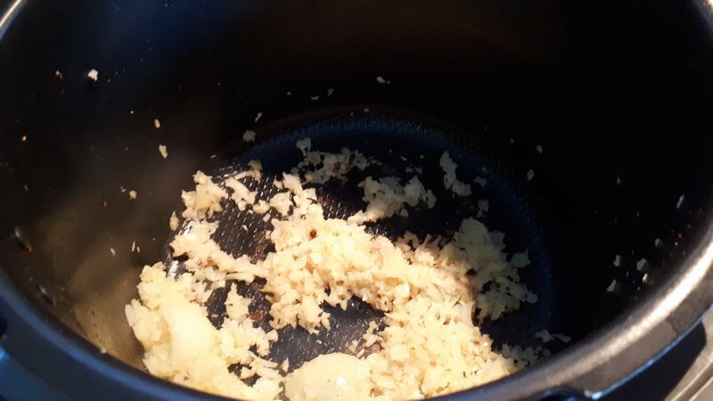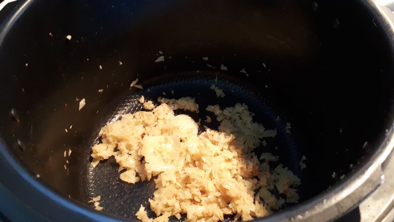 - Ajouter le bouillon de poulet et passer en mode sous pression pour 10 minutes.