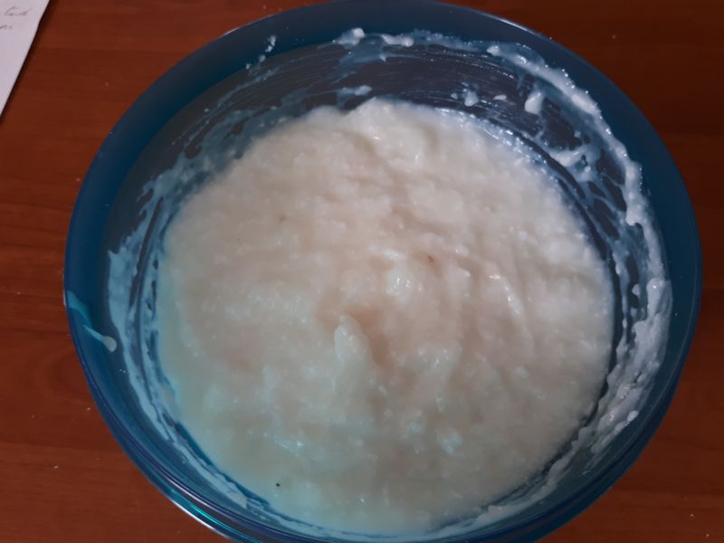 Le recette n’indiquait pas de quantité exacte j’ai du improviser, je pense que c’est un peu trop sucré, vous pourrez diminuer le sucre si vous le souhaitez. J’ai aimé le déguster en croquant dans des bouts de noix de coco.