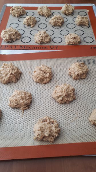 - A l’aide de 2 cuillères à soupe, façonner des tas de pâtes et déposez-les sur une toile silpat, ou une feuille sulfurisée.