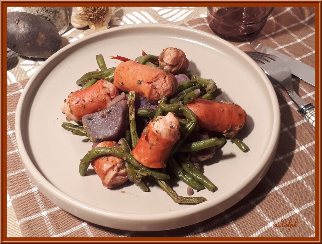 C’est un bon plat complet qui doit ravir les enfants avec ces, saucisses bisous