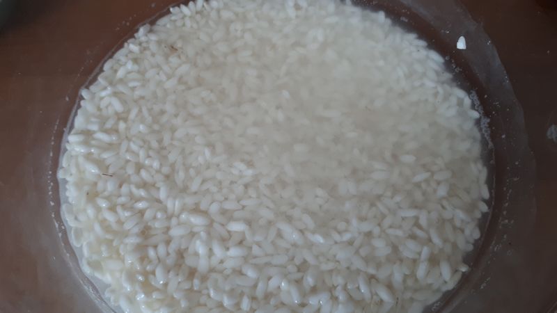 1. Rincer le riz plusieurs fois, le mettre dans un bol, le couvrir d’eau froide et le laisser gonfler pendant au moins une heure.