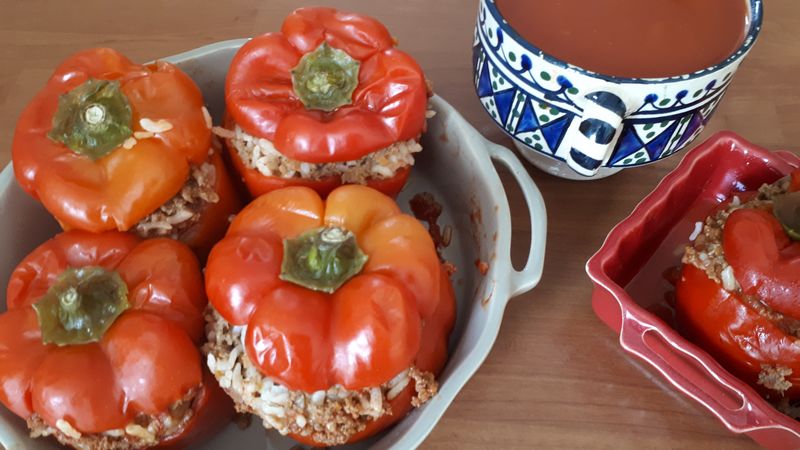 Aujourd’hui c’est la fête nationale en Moldavie, pour choisir ma recette je suis allée tout naturellement chez Natalia qui est d’origine Moldave. Elle m’a généreusement proposé une liste bien complète de différents plats préparés dans son pays..Encore un grand merci Natalia pour ta gentillesse. J’ai donc choisi ces poivrons, oui encore des poivrons farcis, mais cette fois-ci d’une manière différente..En plus il faut profiter c’est la saison de ces légumes gorgés de soleil.