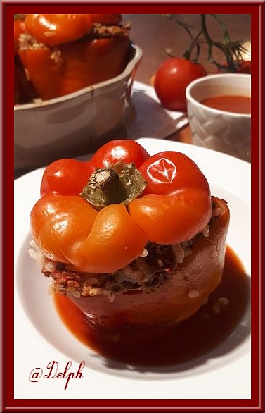 Toi au moins tu les as bien réussies et du coup des poivrons sont bien mis en valeur et terriblement tentants ! merci delphine gros bisous