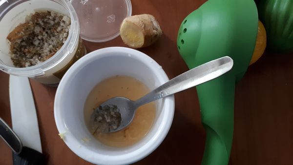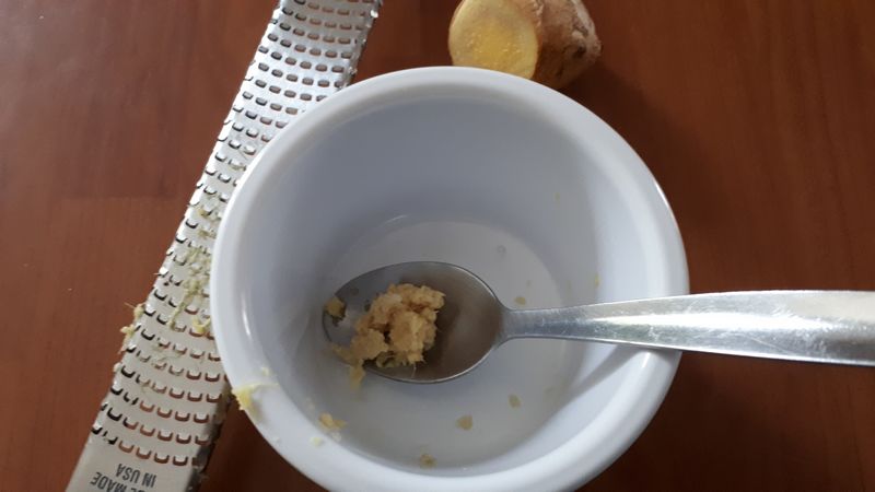 - Mélanger le jus de citron, le gingembre et le sel dans un grand bol.