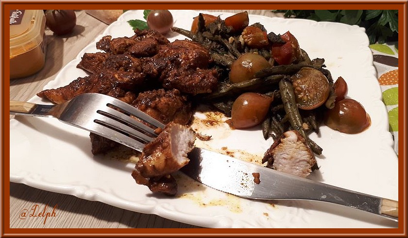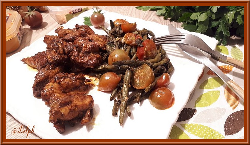 - Servir avec un peu de haricots verts et vos tomates cerises cuites, mais vous pouvez aussi accompagner avec de la semoule.