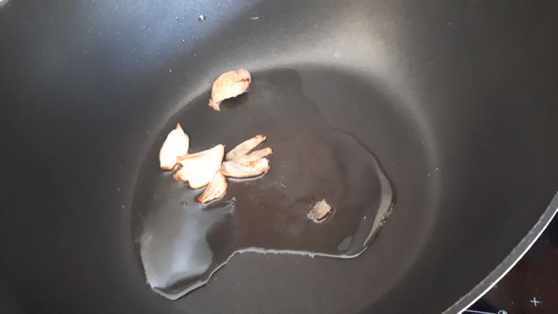 3. Dans votre cocotte, faire fondre sur feu doux, dans l’huile d’olives les gousses d’ail écrasées dans leur peau, puis les retirer. Les garder.