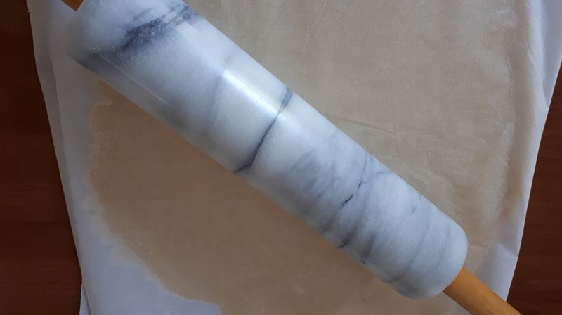 - Au bout de ce temps, étaler votre pâte entre deux papiers sulfurisé avec un rouleau à pâtisserie, l’abaisser sur une épaisseur de 3 à 5 mm.