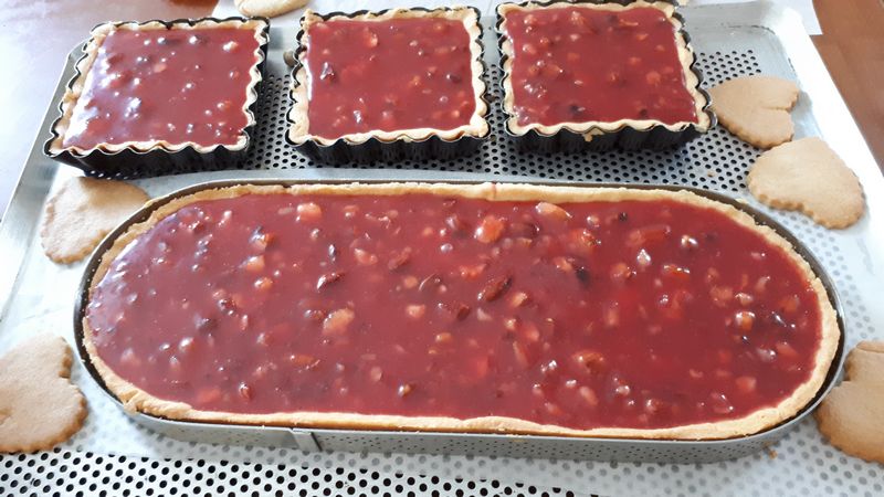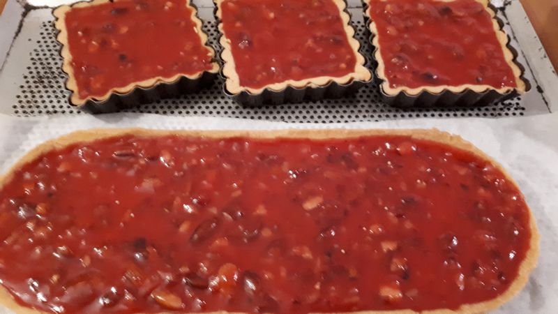 - Verser cette préparation bien chaude sur les fonds de tartes, et laisser refroidir.