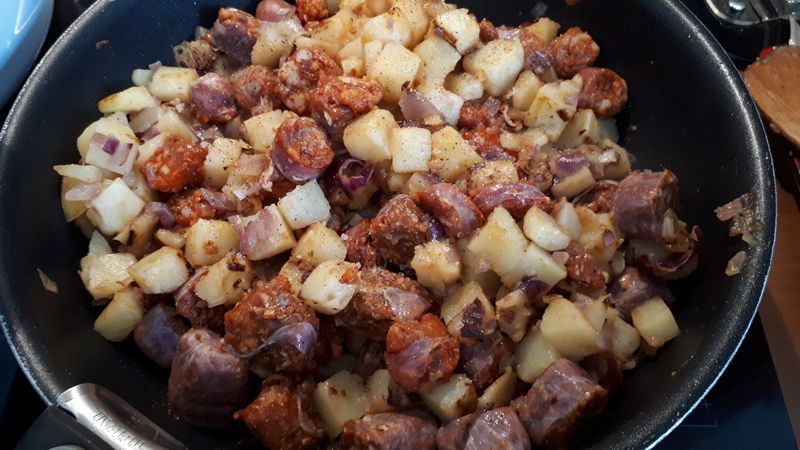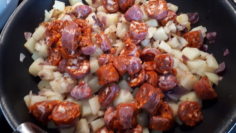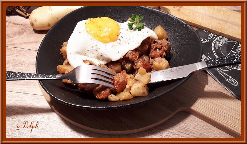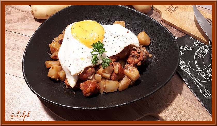 1. Il n’en faut pas plus pour me régaler ! c’est tout simple pas forcément à présenter un jour de fête lorsque l’on a du monde mais quel régal ce petit repas. Le chorizo et un bel oeuf sur le plat c’est parfait pour un soir ! merci Delphine ! gros bisous