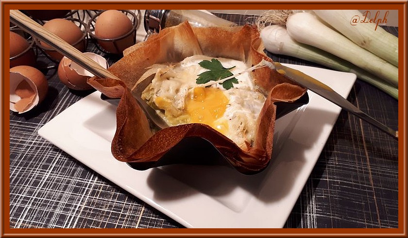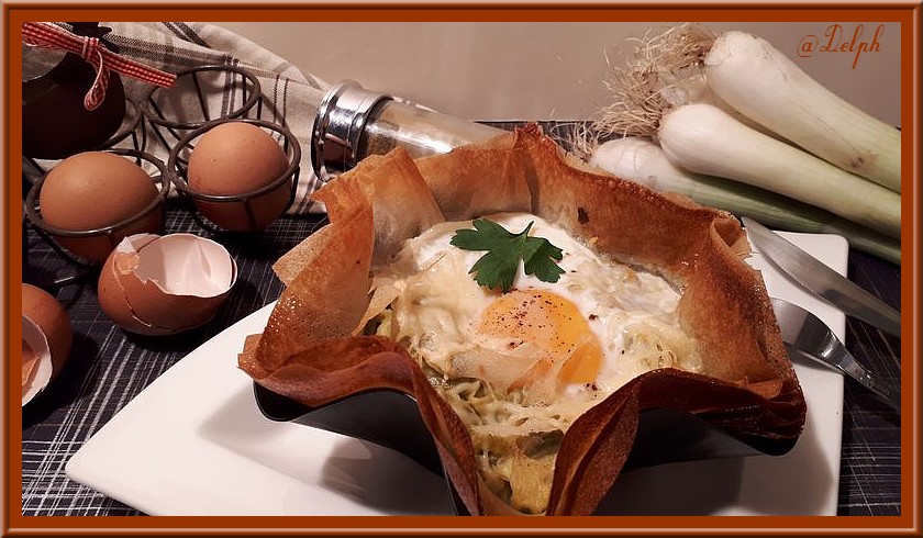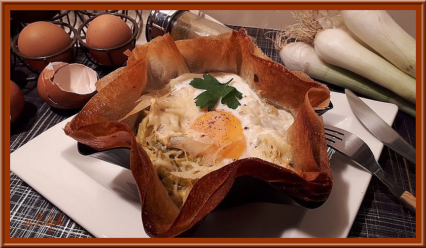 Lorsque ma chère Martine du blog Kilomètre 0 a publié cette recette, je savais que j’allais la réaliser, j’avais tout les ingrédients, et en plus j’aime beaucoup les poireaux. Alors hop en cuisine pour nous régaler simplement. Je n’ai pas fait précuire les bricks, du coup je les ai laissés dans mes moules pour la dégustation .