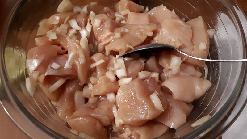 - Faire mariner au minimum 1heure le poulet avec 1 cuillerée à soupe de sauce soja sucrée et 2 cuillères à soupe de sauce soja salée, 1 cuillère à soupe d’huile d’arachide, 1 bonne cuillerée à soupe de sucre, 1 citron pressé, 1 bout de gingembre (cube de 1 à 2 cm de coté) râpé, 1 oignon moyen émincé.
