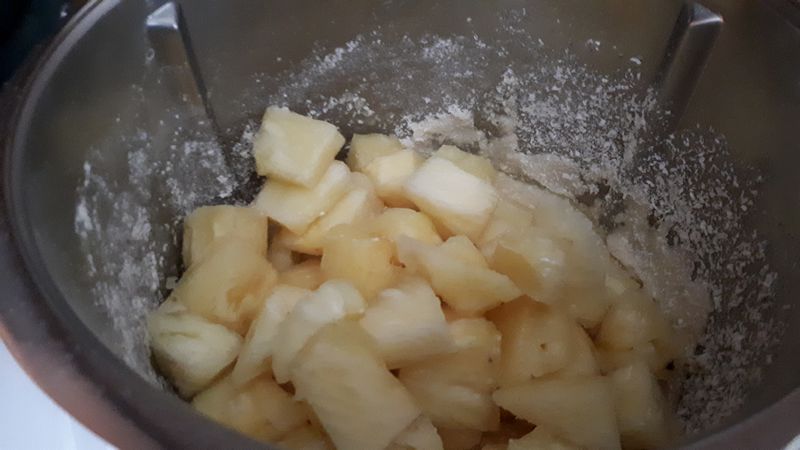 - Ajouter l’ananas coupé en petits bouts puis mélanger 20sec/couteau inversé/vit3.