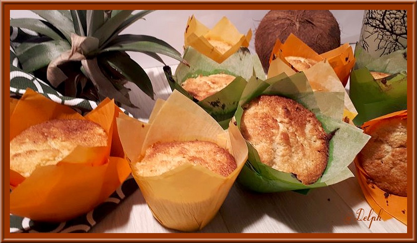 Tres mimis tes muffins , et certainement trés gourmands toutefois sans la noix de coco,pour moi , j’aime bien leur petite corolle en papier coloré, ils sont élégants, bonne idée. Bon week-end Delphine .
