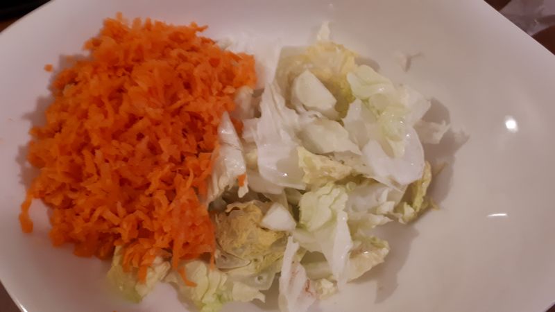 - Peler et râper la carotte, couper l’avocat en fines lamelles, verser le jus de citron dessus; pour éviter que les lamelles ne noircissent.