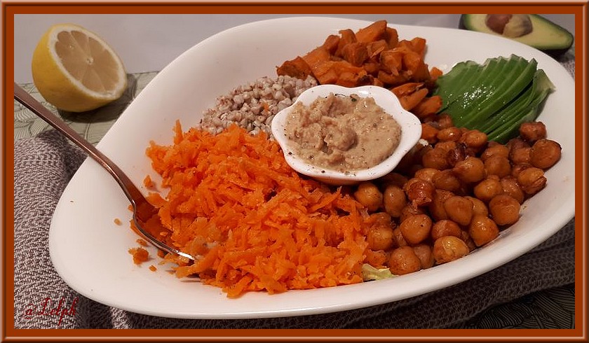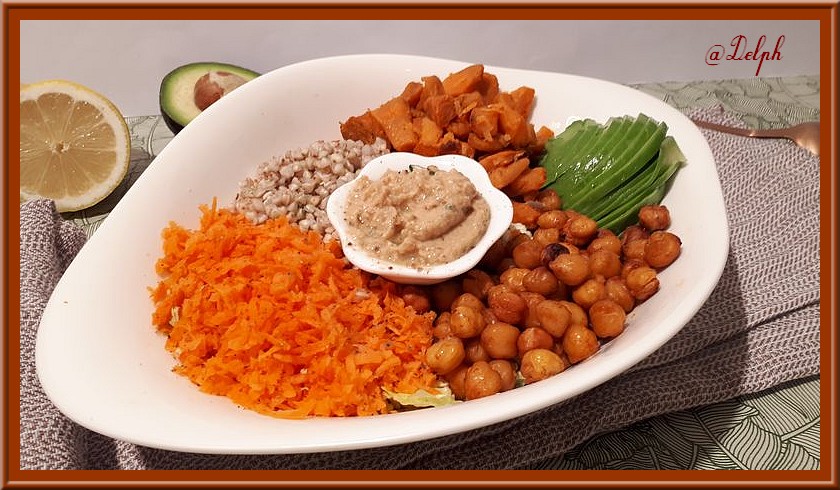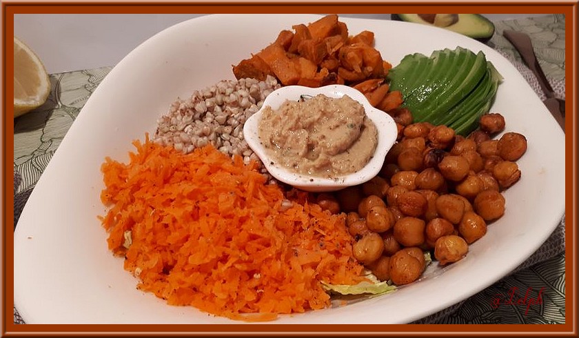 Je suis une grande fan de buddha bowl, j’aime beaucoup car on peut en faire à toutes les sauces. Je me suis régalée.J’ai utilisé du sarrasin, mais vous pouvez selon vos goûts utiliser du boulghour ou du quinoa.