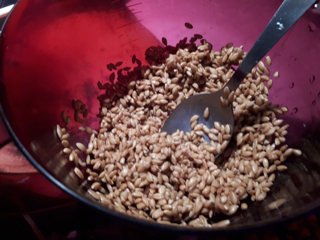 - Verser le petit épeautre, couvrir de bouillon de légumes, puis porter à ébullition.