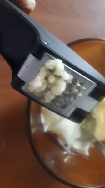 - 1 gousse d’ail pelée et écrasée au presse ail