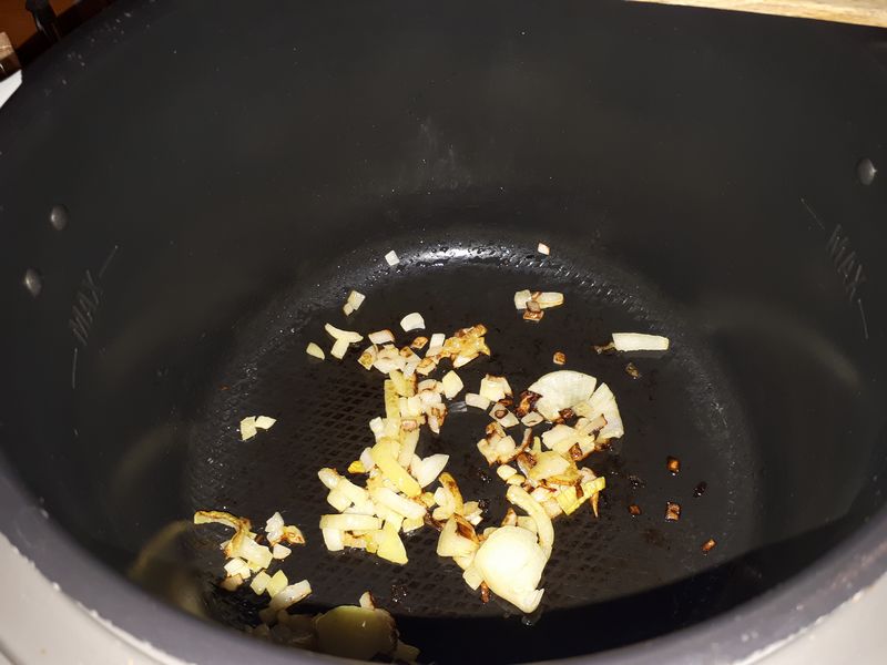 - Déglacer avec le vin blanc, et mélanger 1 minute ajouter l’eau et passer en mode sous pression pour 5 minutes.