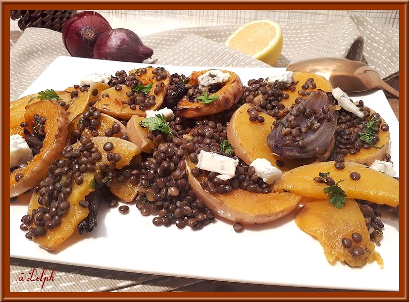 J’adore la combinaison de la courge avec des lentilles et des oignons rouges ! Une excellente idée à tester avant la fin de la saison des courges.