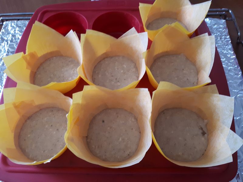 - Remplir les moules en silicone avec de la pâte à 2/3 de leur hauteur.